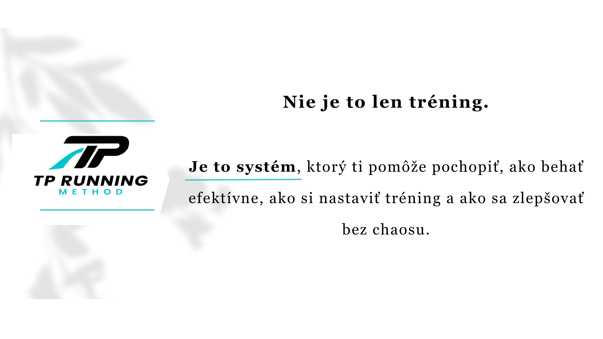 Tréning postavený na systéme TP Running Method, ktorý ti ukáže, čo robiť, prečo to robiť a ako sa zlepšovať.